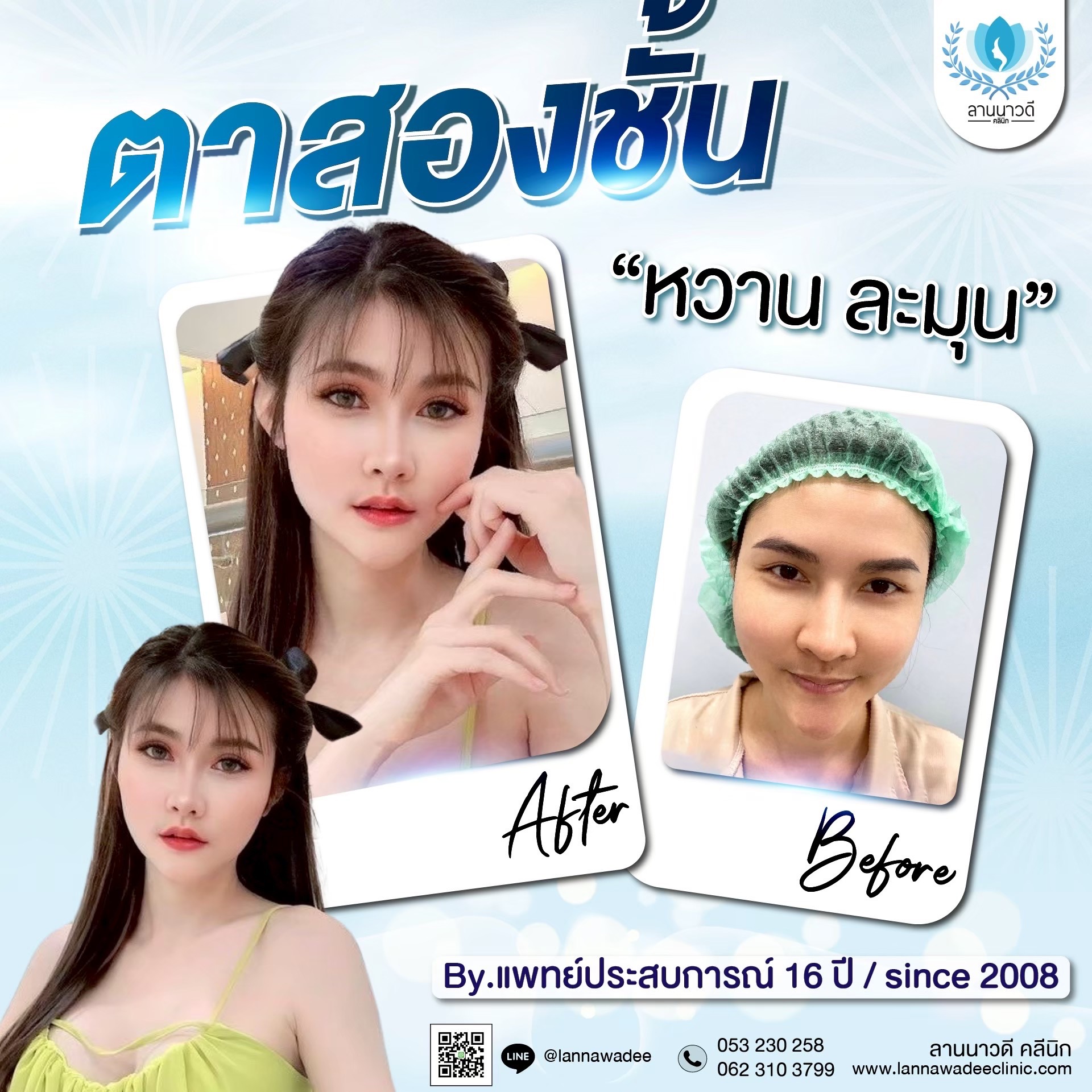 📍สาขาเชียงใหม่ ลานนาวดีคลินิก มีโชคพลาซ่า 206/17 ต.ฟ้าฮ่าม อ.เมือง จ.เชียงใหม่